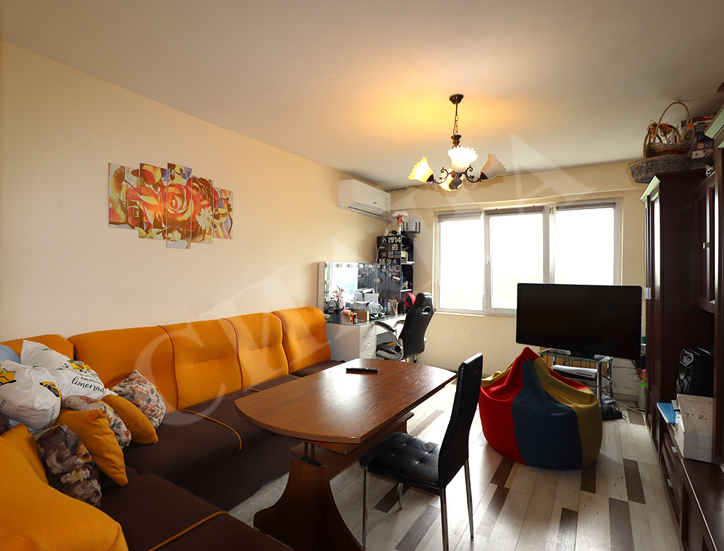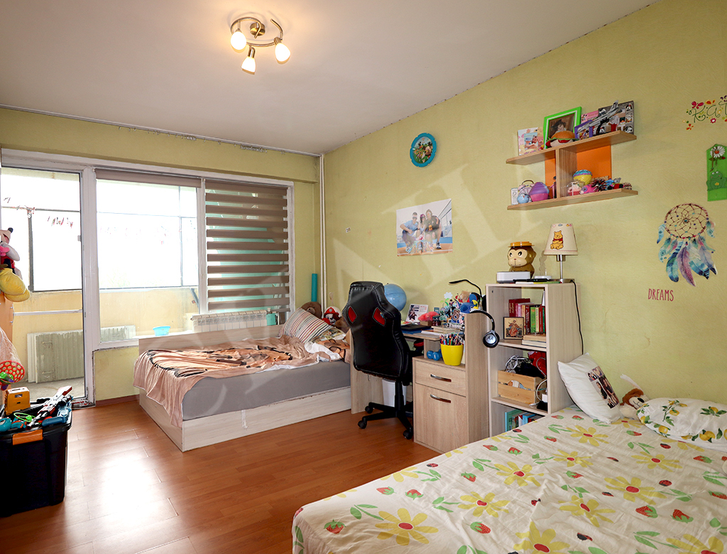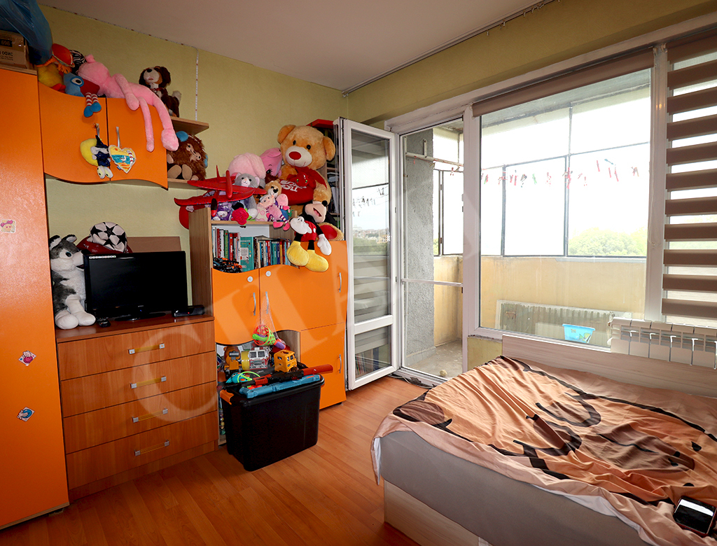 Сиана Недвижими Имоти продава тристаен апартамент в квартал Възраждане на град Русе. Ситуиран е на седми етаж в топлофицирана жилищна сграда в района на Военното поделение, СУ "Възраждане", в близост до Русенски университет и търговски обекти. Общата му площ от 90 кв.м. е разпределена в коридор с голям вграден гардероб, кухня с излаз на остъклена тераса, хол, спалня, детска стая с излаз на остъклена тераса, тоалетна, обновена баня и избено помещение. Жилището е в добро състояние, с PVC дограма на прозорци и тераси, подовете са с ламиниран паркет и теракот, външна топлоизолация, сменени ел. и ВиК инсталации, нови радиатори с топломери с дистанционно отчитане. Около входът е тихо, озеленено, със свободно паркиране.